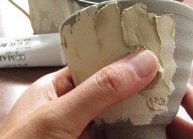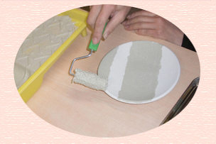手ひねりで成形したあと直ぐに絵付けできます。 |