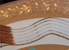 素焼素地への盛絵付や、滑らかなタッチで筆塗りできます。 |
