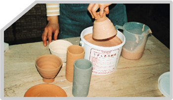 素焼品に化粧乾燥後すぐに釉薬がかけられる