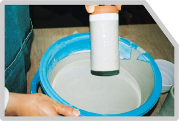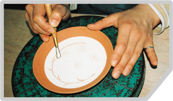 水分が抜けて半乾燥状態から様々な掻き取り技法による彩飾が施せます。