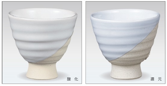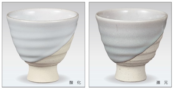 ● 還元にて焼成すると青味が出る。萩の白が透ける。