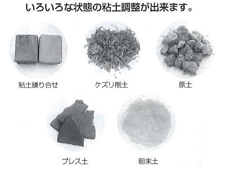 水分の多い陶土の場合、処理能力の低下する場合があります。