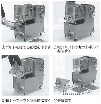 従来の真空土練機の困難だった分解掃除が、MHS-20SWならシャフトとスクリューが