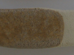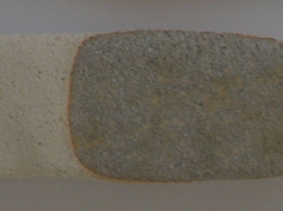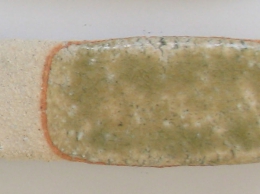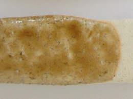 硅長石の比較的荒い粒が含まれ、石ハゼは蛸壷状にならず炎の通りのよい場所では、橙色の鮮やかな色合いに上がります。