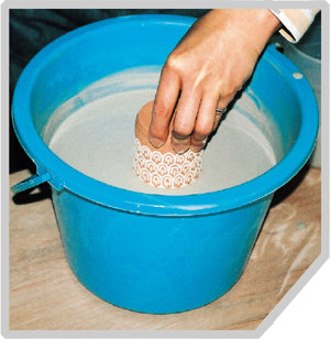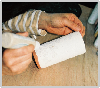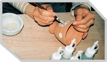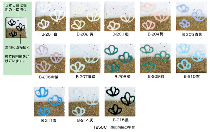 素焼作品上にカラー泥絵具として描くことができます。絵に凸をつけて奥行きのある表現ができます。