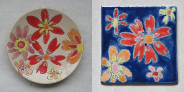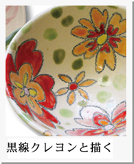 本焼専用黒線クレヨン(CS-100B)で線描のあと、塗り分けできます。