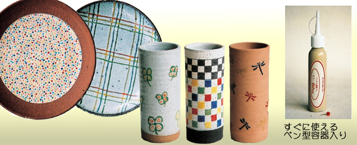 カラー釉ペンは粘土調整と糊剤のバランスを整えてありますので、大変描きやすく接着効果も良好です。