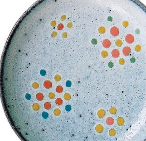 黒陶土などの有色素焼作品上にカラー釉絵具として描くことができます。