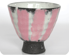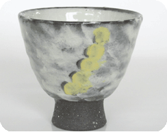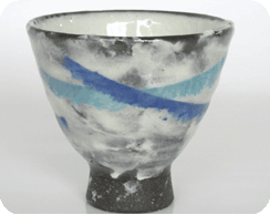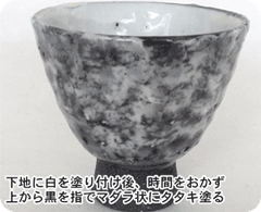 成形⇒完全乾燥状態から素焼後の間、やわらか羽毛化粧を塗る⇒乾燥後、施釉⇒本焼