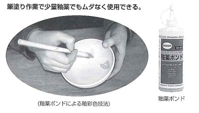 (送料別) 釉薬ボンド 筆伸びが良く、厚塗りしてもタレの出ない釉薬接着剤です。 釉薬の装飾技法が飛躍的に拡大。 筆塗り作業で、少量釉薬でもムダなく使用できます。