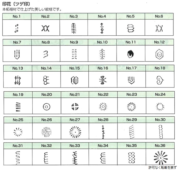 (送料別途) ツゲ印NO.1~NO.19 在庫限りとなります。 |