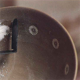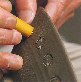 作陶半ばにして、完成を見ない造形物の上に作者の刻印を押す。 |